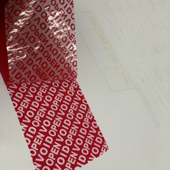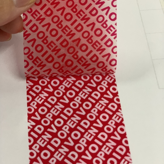 2. Dòng chữ bảo mật: Khi nhãn bị bóc, dòng chữ “VOID” hoặc “OPEN” xuất hiện, giúp người dùng dễ dàng nhận biết rằng sản phẩm hoặc gói hàng đã bị mở hoặc niêm phong bị phá vỡ.